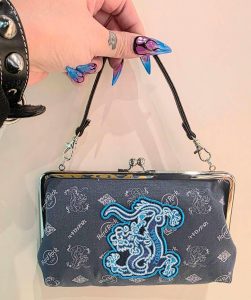 各店限定デザイン💥がま口ポーチ & ハンドバッグ👛 ブルードラゴンの刺繍が存在感抜群🐉💙